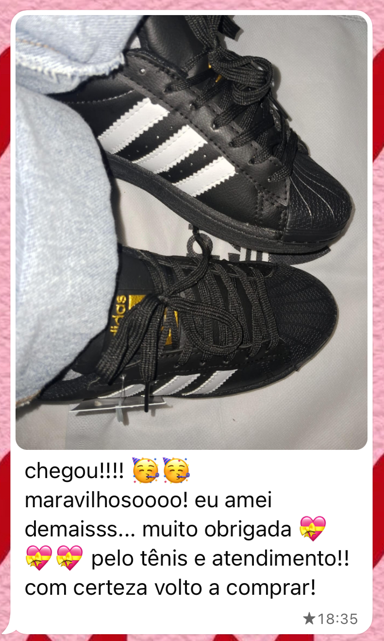 Superstar Preto é um clássico dos anos 90 que nunca sai de moda! Com seu design icônico e detalhes marcantes, ele traz toda a atitude e estilo daquela década para os seus pés. Ideal para quem quer unir conforto e personalidade no dia a dia.