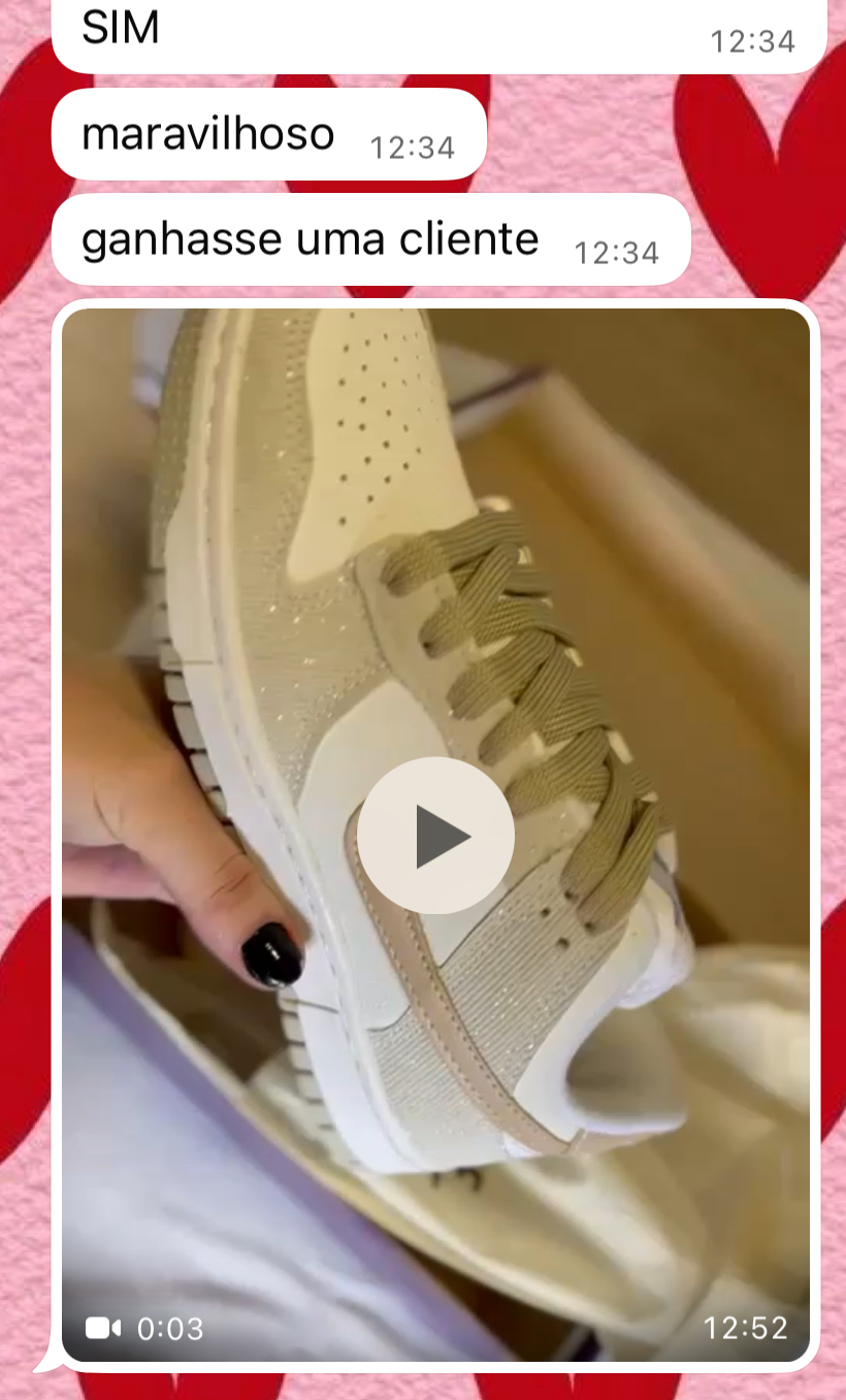 Miga, este é o Nike Dunk Luxo! Todo em couro sintético, bem estofado e resistente. Com brilhos e gliters bem fininhos, super delicado e estiloso. Clean!